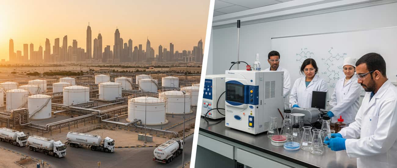 Today, Safeenat Al Sharq operates 21 storage tanks with about 2,500 MT capacity. With its own fleet, weighbridge, and in-house laboratory, the company provides end-to-end services from collection and recycling to blending, storage, and fuel delivery across the Emirates.
